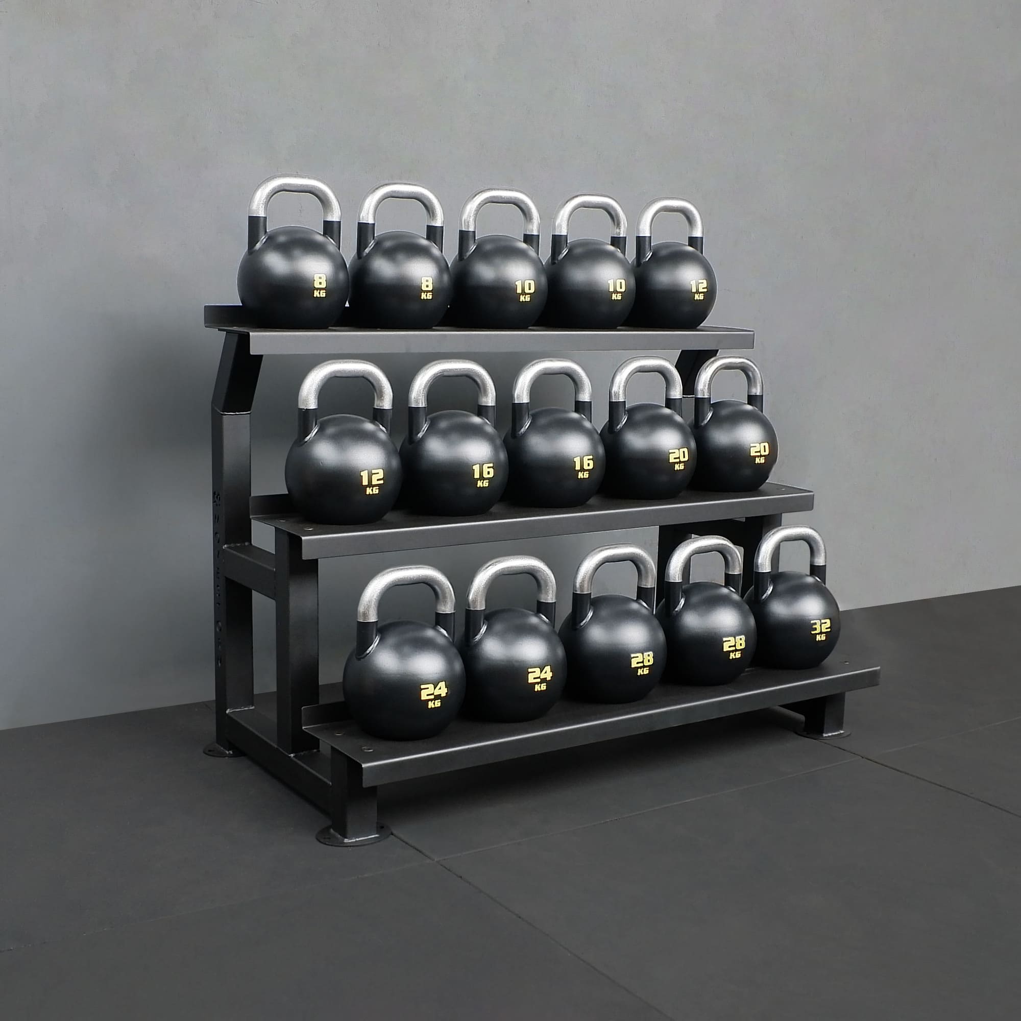 Movestorm Kettlebells Rack 3-Tier brings organization and efficiency to any training space.