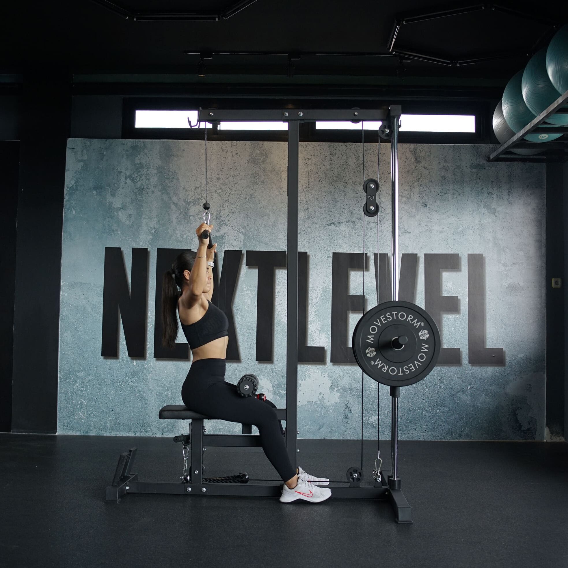 The Movestorm LITE allows you to perform both lat pulldown and seated row exercises.