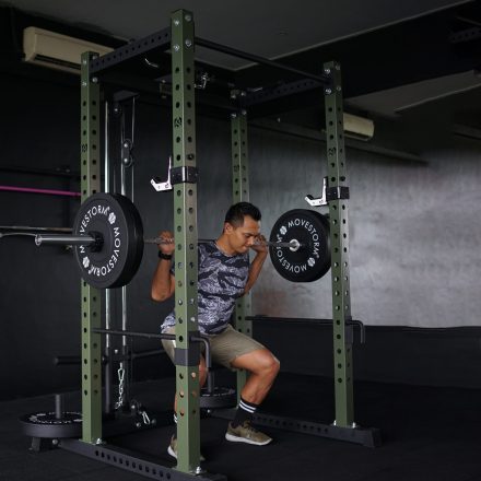 The Movestorm Lite Squat Rack is designed for efficient strength training.