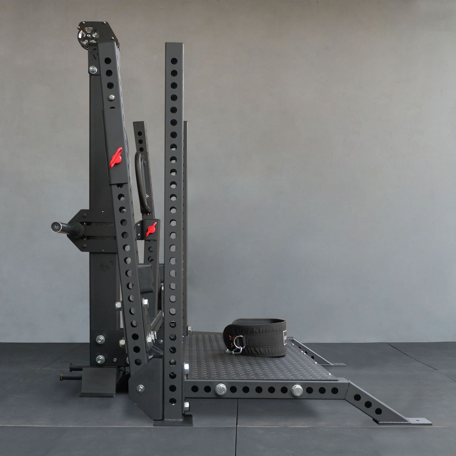 Unlike traditional squats where the bar presses down on your shoulders and spine, the Raptor Belt Squat allows you to attach the resistance directly to a lifting belt. This means powerful leg and glute engagement—without compressive spinal load. The design works with standard power racks and offers compatibility with most lifting setups.