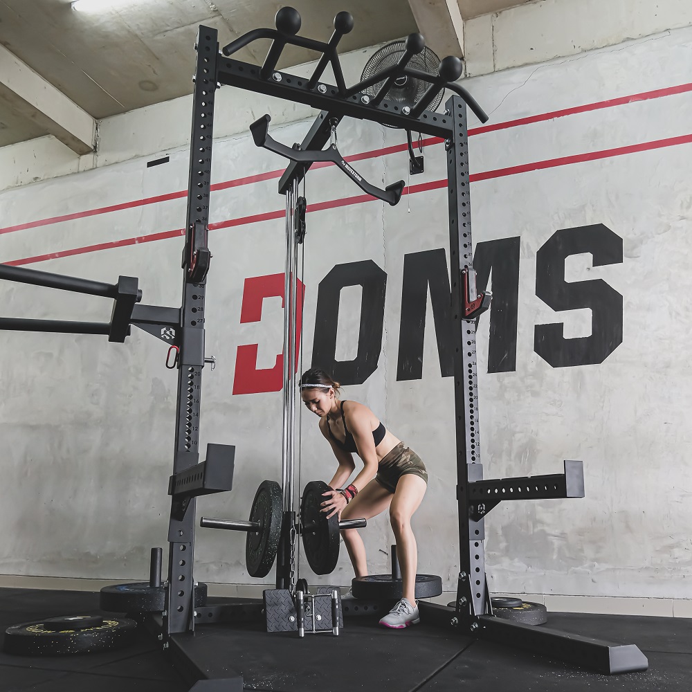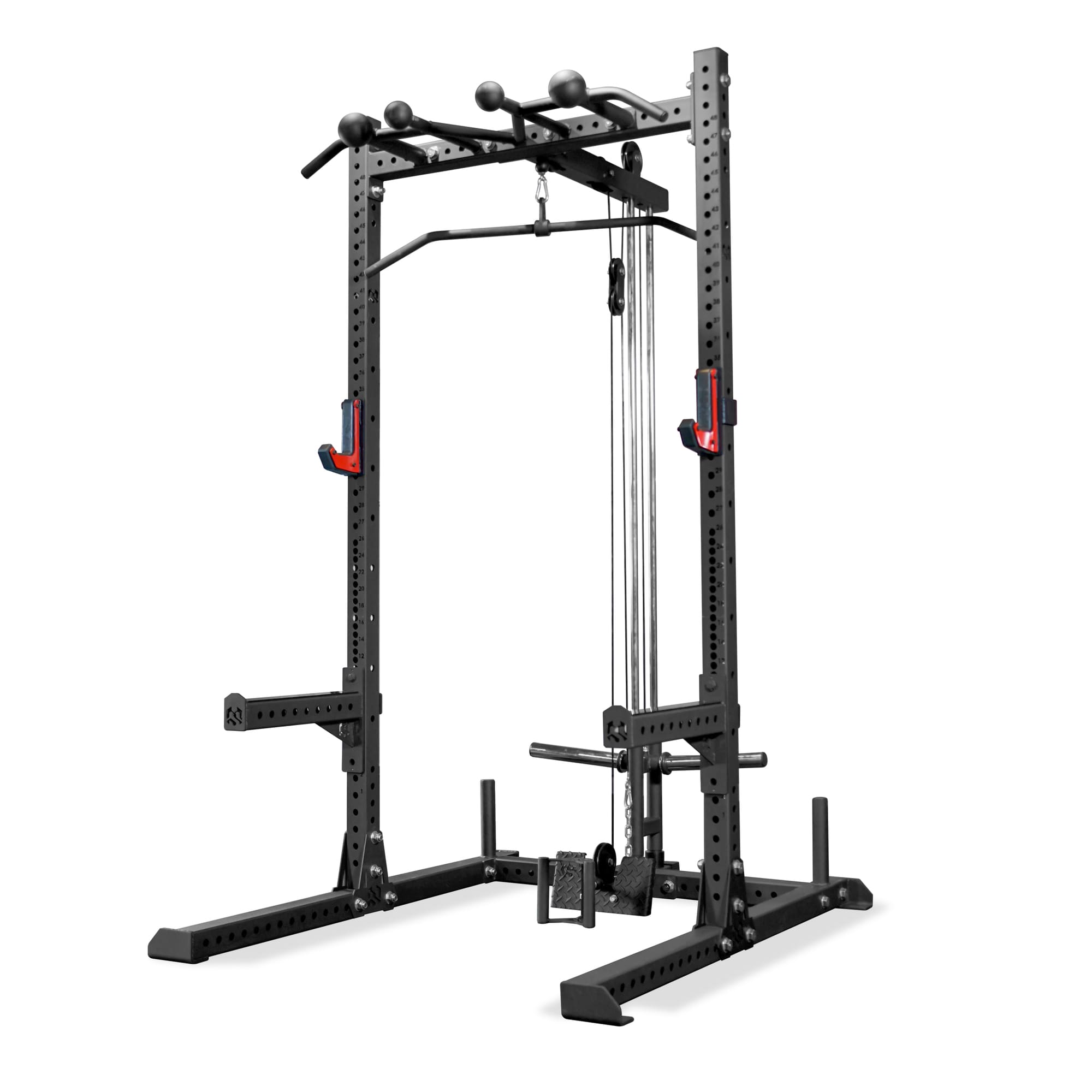 For athletes seeking a complete training system, the INFINITY Series adds advanced attachments such as a pulley system for pull movements, a multi-grip pull-up bar, and a dip attachment. Consequently, the rack transforms into a full-body strength station.
