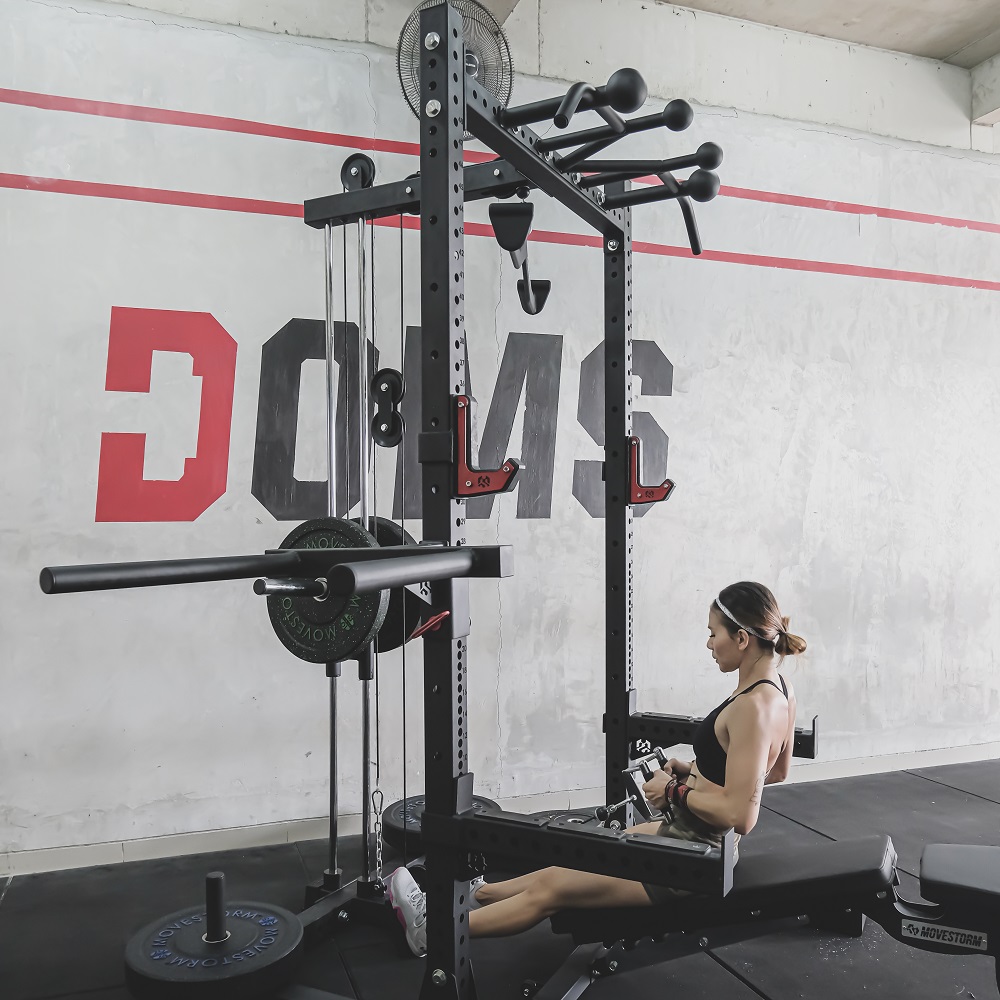The Movestorm Ultimate Squat Rack is engineered to deliver a strong, stable, and space-efficient training solution. Its extended flat-foot base design removes the need for floor bolting, while rear base weight horns and triangular reinforcements significantly enhance overall stability. As a result, the rack stays solid even during heavy squats and presses.